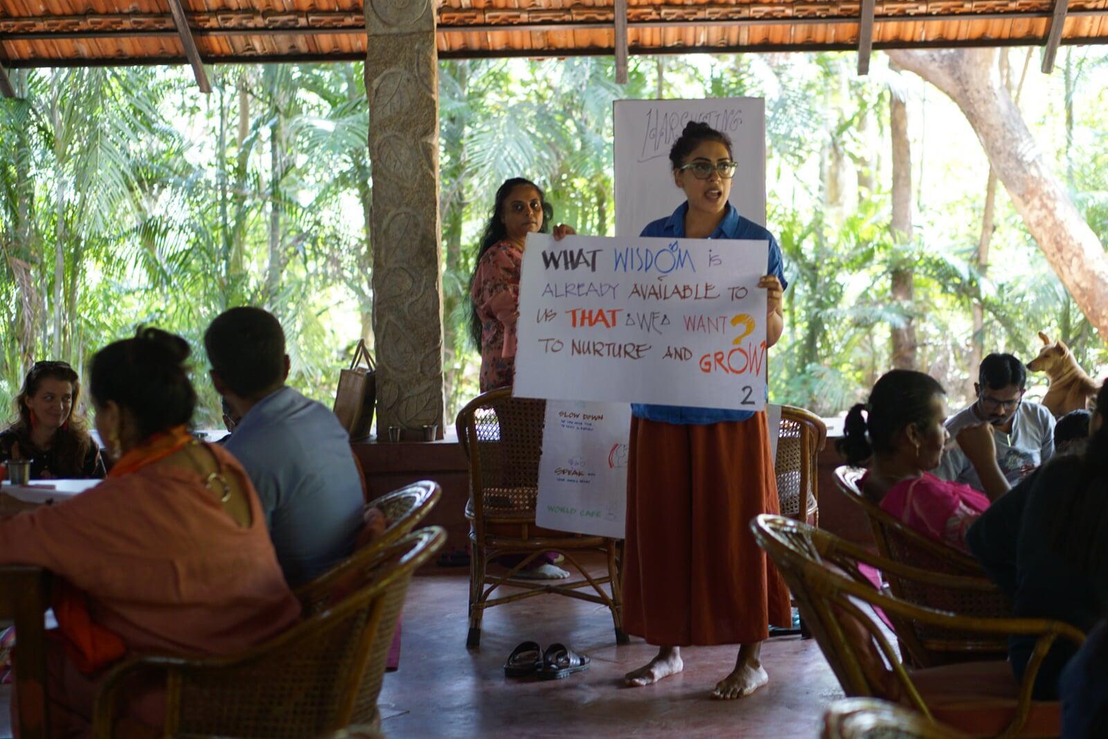 Our afternoon kicked off with a warm welcome from Archana, who set the tone for the event by framing the session and inviting us into the powerful calling question. “How can we listen to the layers of wisdom in India to co-create a thriving future?"