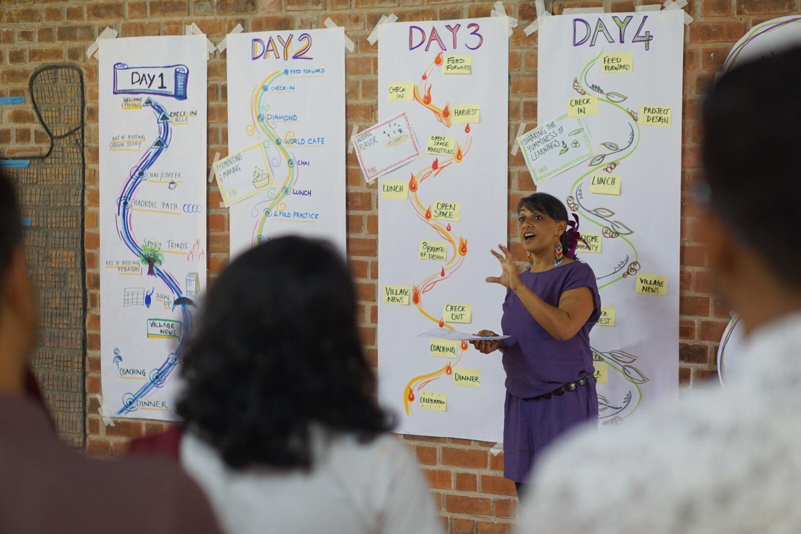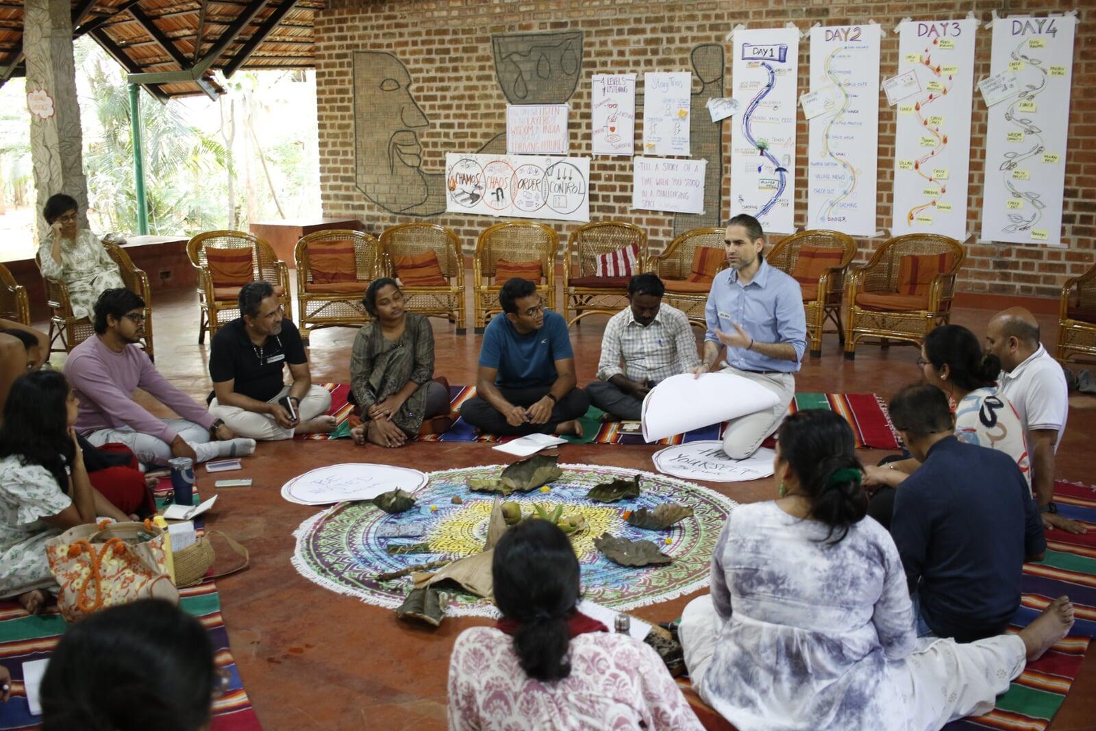 In December 2024, more than 30 individuals came together at the Fireflies Intercultural Center in Bengaluru, India, for a four-day Art of Participatory Leadership training. Guided by the question, "How can we listen to the layers of wisdom in India to co-create a thriving future?" , participants explored how to host meaningful conversations, build strong communities, and navigate complexity with care and courage.