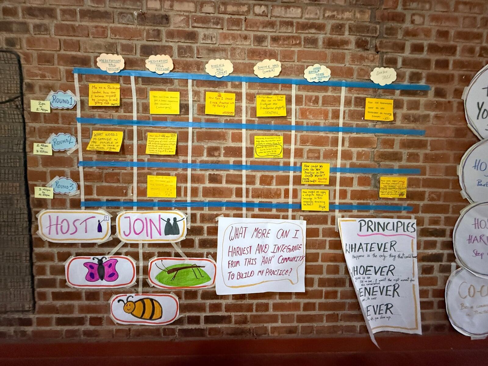 Next, we delved into the art of harvesting, discovering the importance of designing for both tangible and intangible outcomes. From there, the energy shifted to the Open Space marketplace, where the host team introduced a lineup of intriguing sessions. Curiosity buzzed as participants explored and signed up for sessions that sparked their interest.