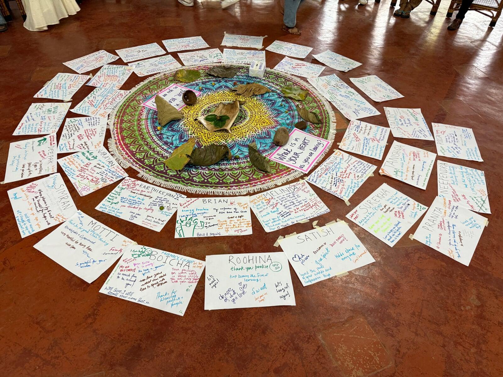 After lunch, we went on a bit of a reflective journey together, looking back at our time over the last four days. We reflected individually in silence before we gathered in a circle one last time (in this specific space!) to share what was alive in us after these four wholesome days. The overarching feeling was one of gratitude and deep joy; how lucky we were to gather in this space, with each other, learning and co-creating along the way! To listen to the guided gallery walk, click here to watch the recording.