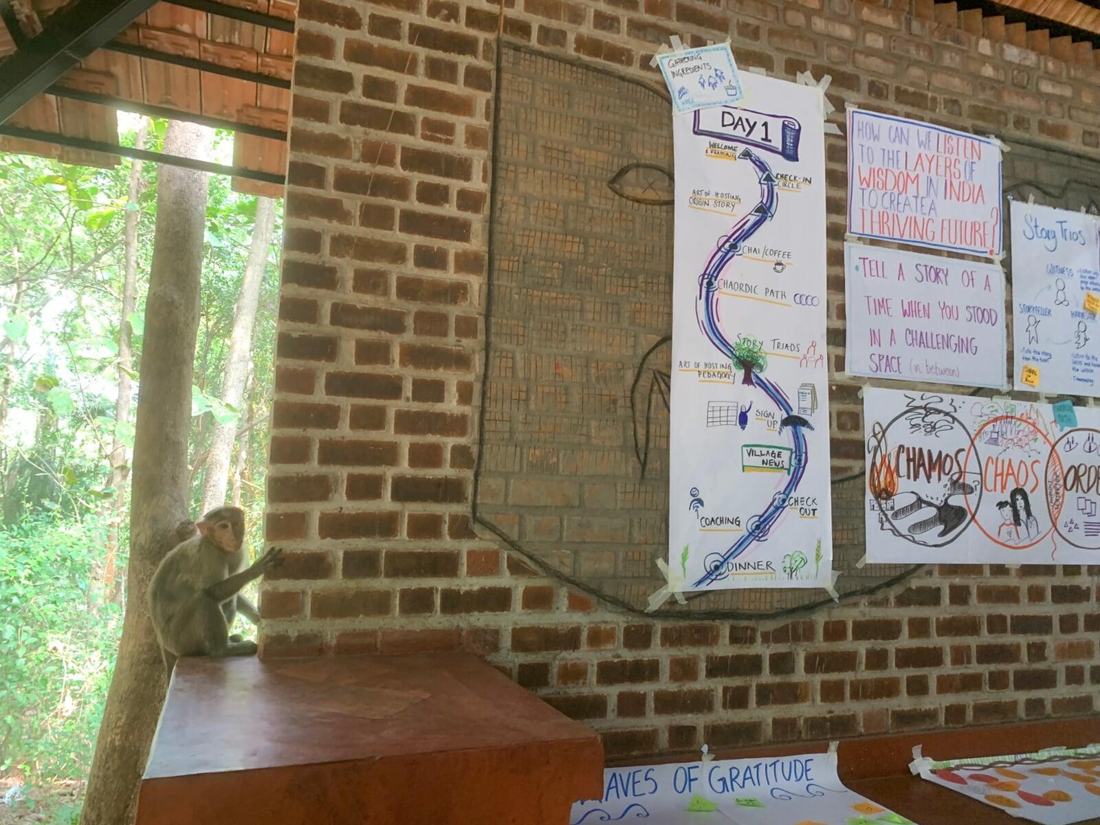 Set amidst nature, the gathering wove together ancient traditions and modern approaches to participatory leadership—with a few surprise guests, as curious monkeys and friendly dogs occasionally wandered into the workshop, perhaps drawn by the spirit of deep dialogue (or just the snacks).